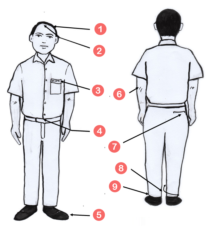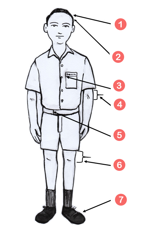 - The hair should be cut short and combed to the side. (Side part hair 1/2 inch long)